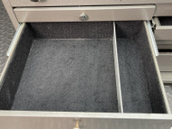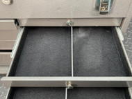 All the drawers in this tool box are felt lined with no tears. The drawers all slide easily.